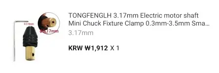 - 미니 드릴 척 (알리익스프레스, 본인의 모터 샤프트의 직경에 맞는 제품을 구입해야 합니다.)