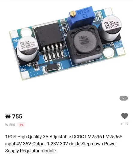 DC-DC 컨버터는 아래의 제품을 이용했습니다.