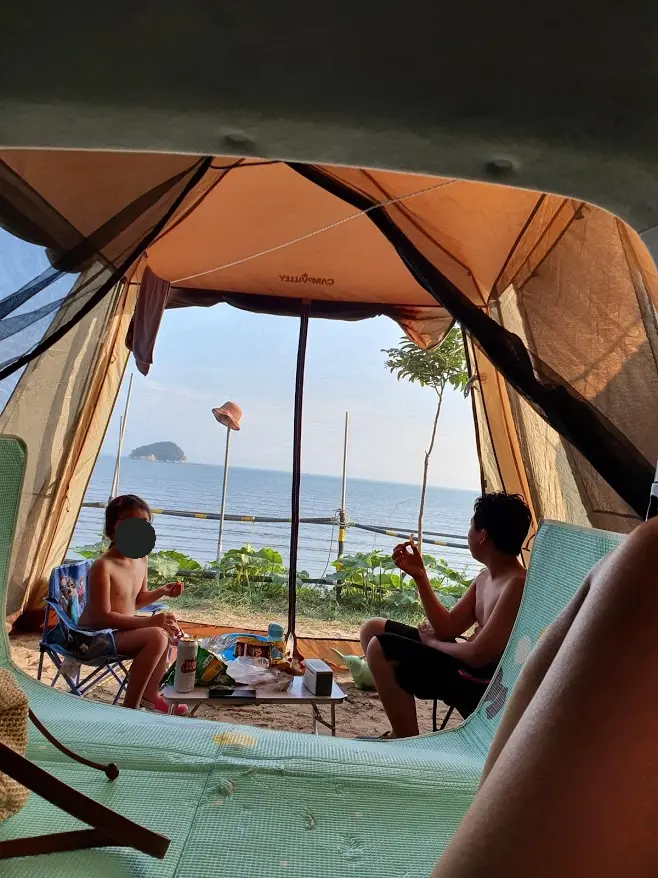 첫날은 뭐 대단한걸 준비해 간게 아니었기 때문에 바닷가에서 조금 놀다가 라면만 먹고 왔습니다. 한가족이 앉아 쉬고 놀기에는 정말 딱 괜찮은 사이즈인것 같습니다.