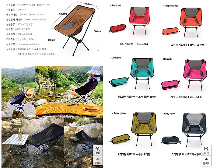 우선 짐이 많으면 캠핑자체를 꺼리게 되는건 당연지사. 짐싣고 푸는데 땀뻘뻘 흘렸던 기억이 떠올라 의자는 작은걸로 구입했습니다.