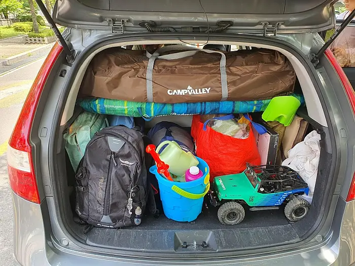 일단 짐을 싣고 출발해 봅니다. 자고올건 아니고 정말 텐트쳐보고 잠깐 놀고 올 계획입니다.