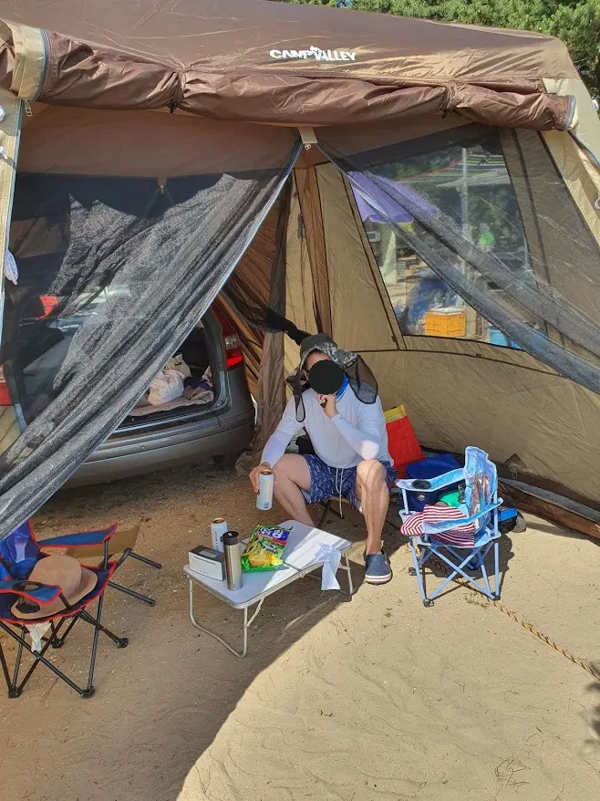 차량용 차박 텐트는 기본적으로 차량안에서 잠을 자는 것을 기본으로 하기 때문에 텐트 바닥은 없습니다. 바닥이 있는 제품도 있었으나 신발 신고 다닐 수 없다면 신발 신고 벗기가 불편할 것 같고 또 청소도 매번 해주어야 하니 바닥이 없는 제품이 낫겠다 싶었습니다.