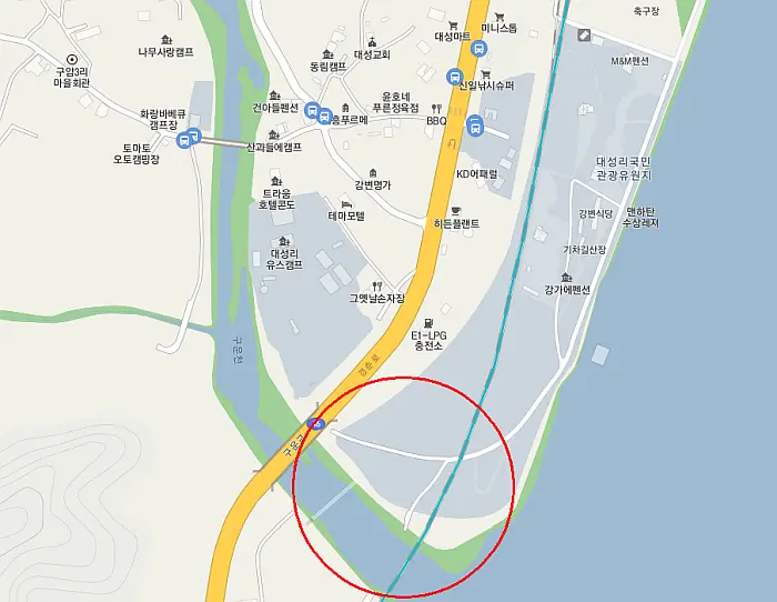 남양주시를 막 벗어나는 곳에 대성리가 있는데요. 대성리쪽으로 건너는 다리 "구운교"를 지나가는데 아래쪽에 차박 캠퍼들이 보이는게 아니겠습니까?