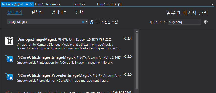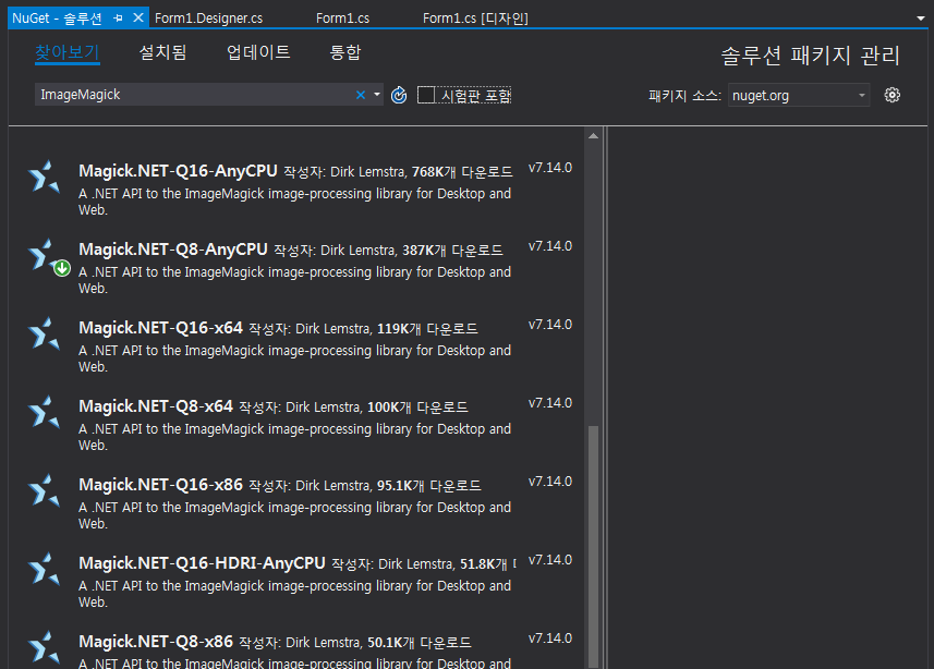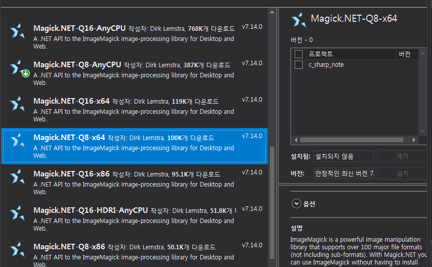 요런 식으로 Magick.NET 이라고 붙어 있는 녀석이 .NET 용 라이브러리 입니다.