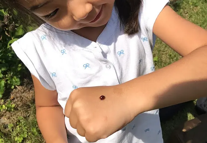 무당벌레가 귀엽다며 손등위에 올린 딸아이가 전 더 귀엽습니다.