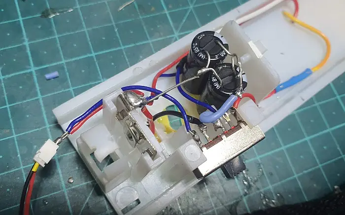 스위치를 끄면 아주 잠깐이지만 서서히 불이 꺼지도록 전해 콘덴서를 두개 병렬로 달아 주었습니다.