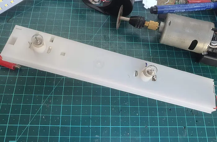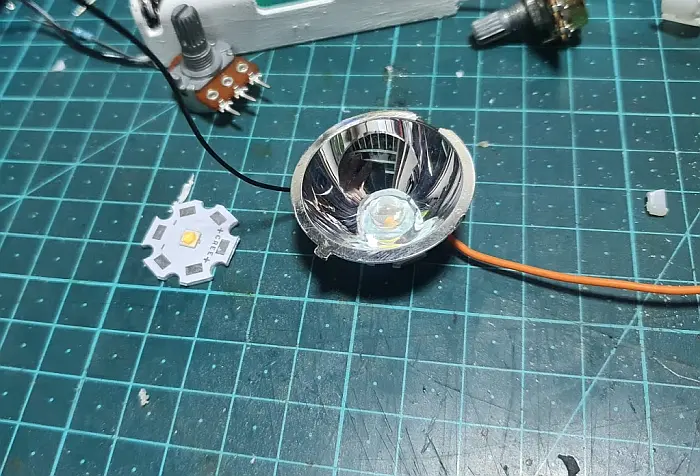 서치 라이트로 사용할 1W LED 를 붙였습니다. 뭐 이건 간단할 줄 알았는데 구멍 깊이가 깊어서 조각기 출동!