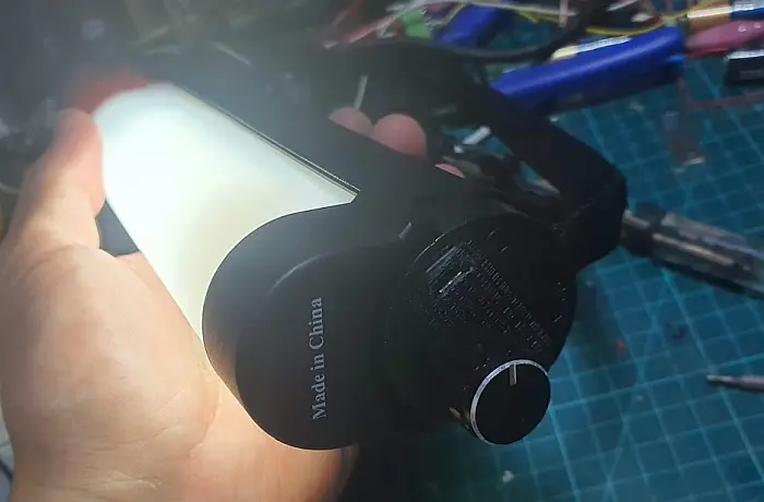 이 랜턴은 서치라이트, 간접등, 일반 조명 이렇게 3가지 기능을 할 수 있는 제품인데요. 모두 꼬마전구로 되어 있어 전력 소비가 컸을 겁니다. 요즘은 더 밝고 전력 소모는 적은 LED 라는 훌륭한 부품이 있으니 LED 로 교체해야 겠군요.