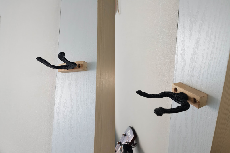 우쿨렐레를 걸어보았습니다. 위아래로 나란히 걸수 있도록 두개를 부착해 주었습니다.