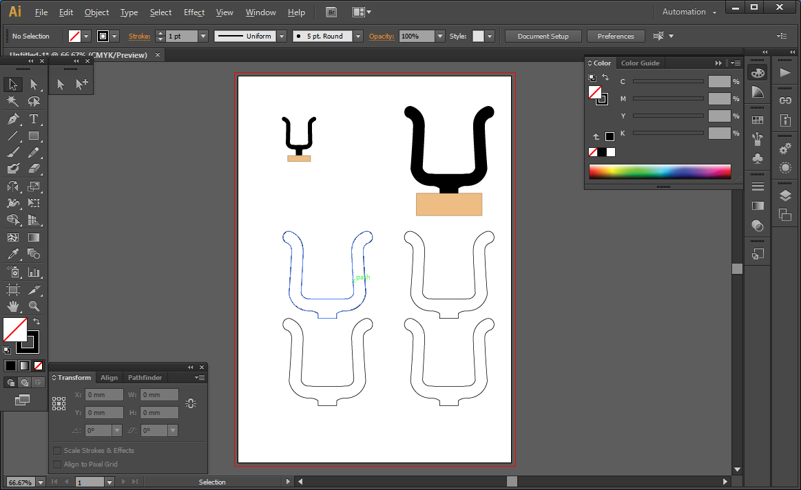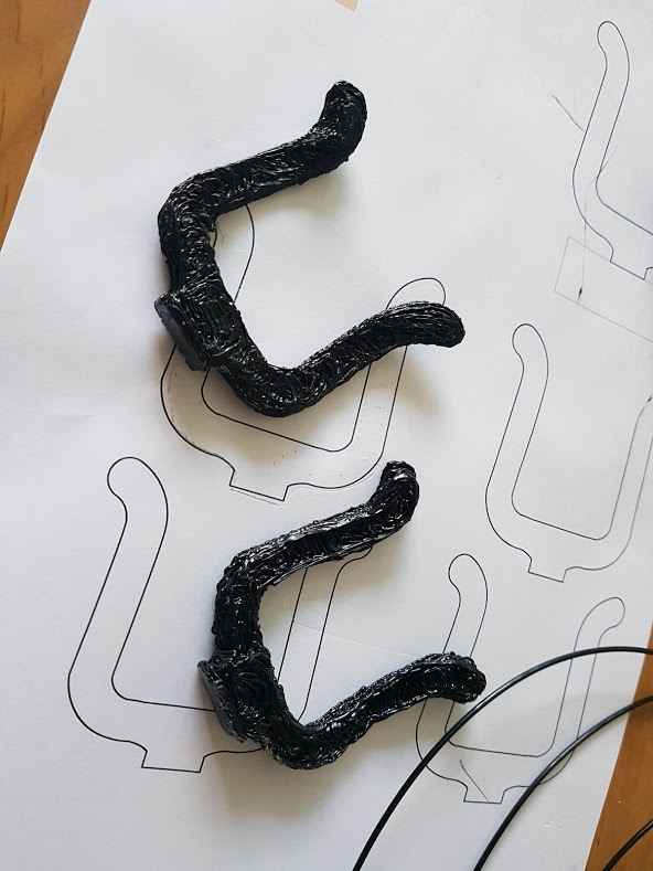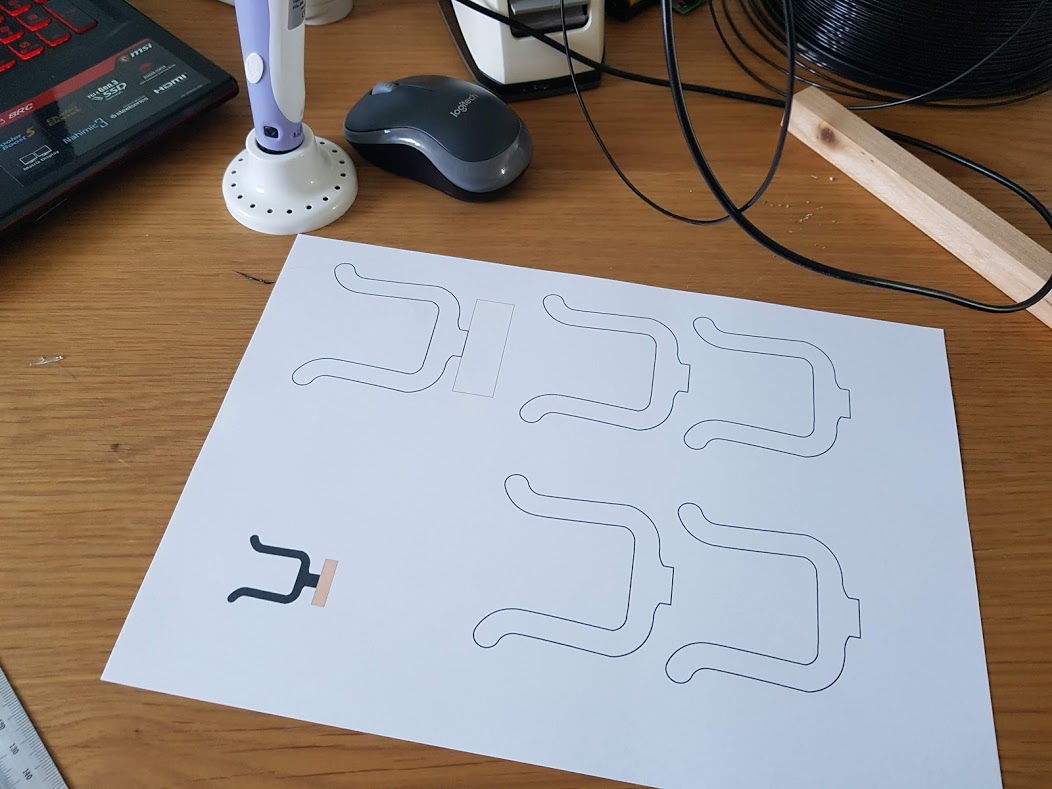 벽에 부착하는 부분은 나무로 제작하고 위에 검은 색 부분이 우쿨렐레가 걸리는 부분으로 3D Pen 을 이용하여 제작할 부분이 되겠습니다. 아래 테두리만 있는 부분이 실제 제작할 크기로 확대 해 놓은 도면입니다.