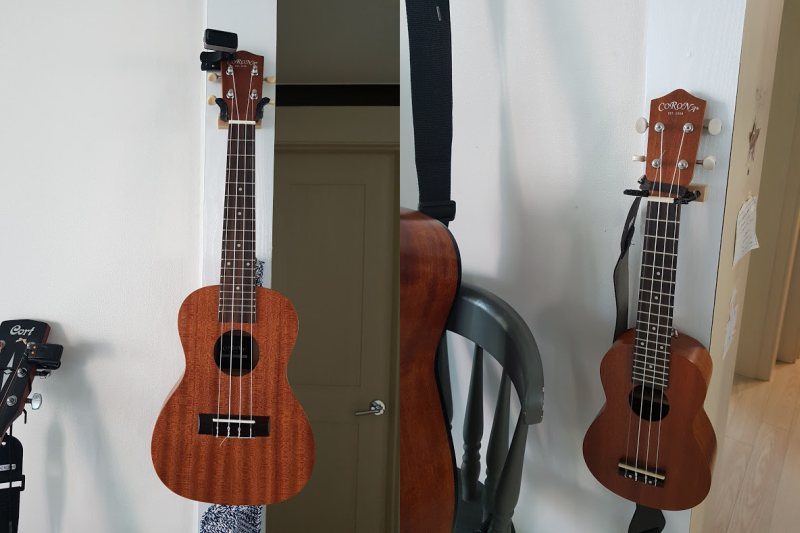 집에 우쿨렐레가 두개가 있어 따로 거치대를 만들었었는데 이게 바닥에 놓는 형식이다 보니 두대를 놓고나면 이래저리 자리를 많이 차지하여 여간 불편한게 아니었습니다.