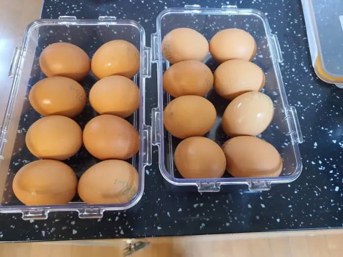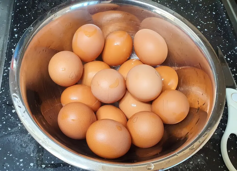 삶기 전 계란을 실온에 두어 (2~30분) 실온에 가까운 온도로 세팅해 줍니다.