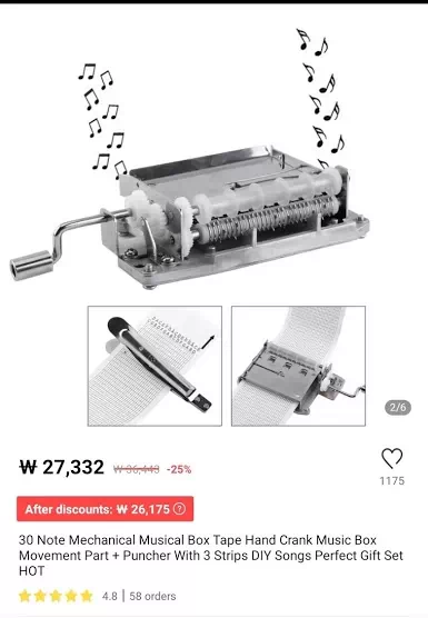 딸내미가 생일 선물로 오르골을 받고 싶다고 하네요. 와이프는 쿠X 에서 몇가지 제품을 살펴보고 저는 옆에서 기웃 거리다가 그거 알리에서 구입하면 더 쌀텐데... 하며 알리 어플을 열어 이것저것 살펴보다가 재미있는 제품을 발견 하였습니다.