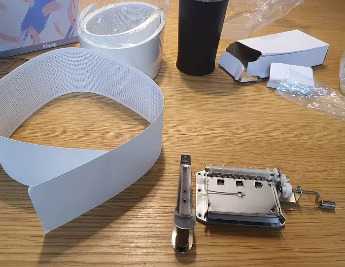 직접 종이에 펀치로 구멍을 뚫어 악보를 만들어 오르골을 연주할 수 있는 제품이었습니다.