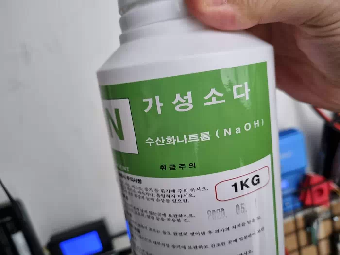 전에 쿠팡에서 구입하였던 가성소다(수산화나트룸) 을 꺼냅니다.