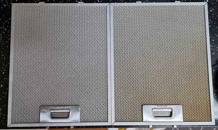 이렇게 청소가 완료된 렌지후드 필터와 청소전 필터를 한번 비교해 보도록 하겠습니다.
