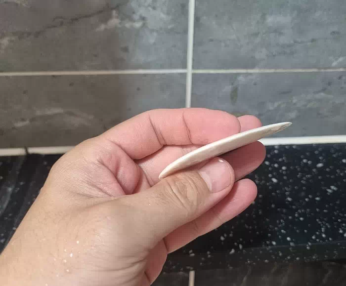 위 사진과 같이 새로 꺼내서 1번 사용한 비누에 전에 사용하던 얇은 비누를 얹어 주고 꾸욱 (너무 세게 누르다가 미끄러지면 안되요) 눌러 줍니다. 아주 세게 누를 필요는 없습니다.