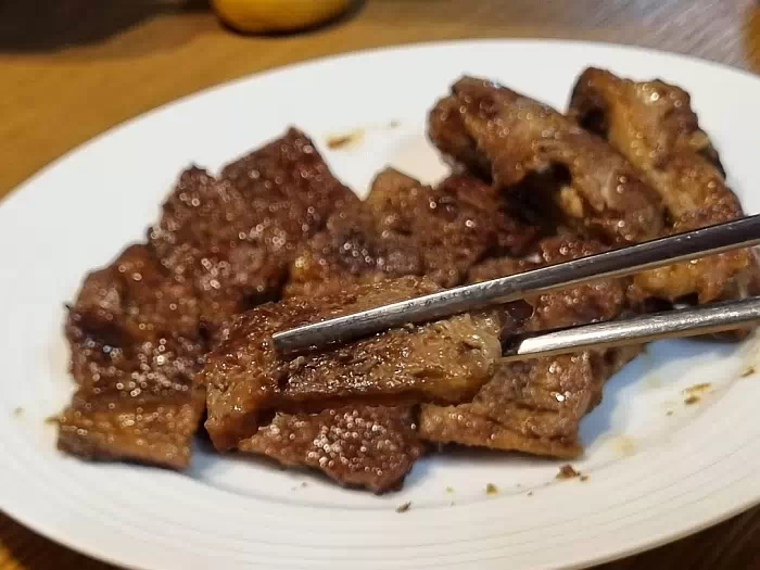 - 돼지 갈비나 목살 같은 두꺼운 고기는 약한 불로 뚜껑을 덮고 오래 익힌다.