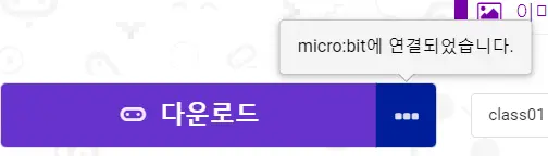 위와 같이 마이크로비트가 연결된 모습이면 다운로드 버튼을 누르면 바로 업로드가 가능합니다.