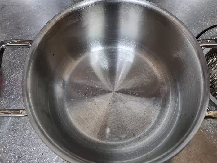 바닥에 긁힌 자국이 참 아쉽지만.... 이정도면 아까 그 새까맣게 타버린 냄비와 비교했을떄 성공했다 할 수 있겠습니다.