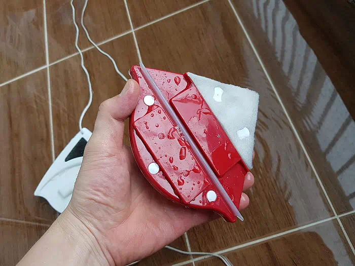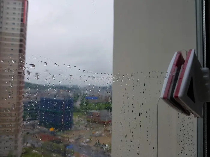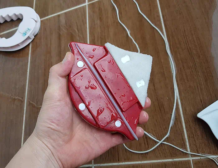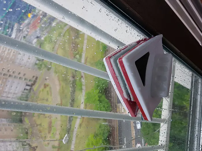 대부분의 자석을 이용한 양면 유리 닦기 제품이 비슷한 것 같은데 가능하면 비오는날 청소하기를 권장한다. 마른 유리에서는 덕덕덕 하며 부드럽게 밀리지가 않는다. 떨어질까 불안 스럽기도 하고. 무엇보다 아래층으로 물을 떨어뜨려 이불이라도 널어놓은 집에 폐를 끼치면 아니 되겠다.