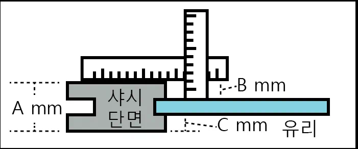 정확한 유리의 두께를 모르겠으면 아래의 그림을 참고하여 측정해보는 것도 좋을 것이다.