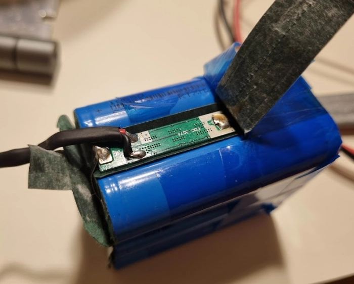 배터리를 테이프로 적당히 둘러 고정을 시켜주고 외부로 단자 등이 노출되지 않도록 감싸 줍니다.
