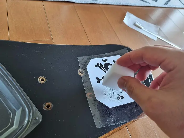 어짜피 발로 계속 밟혀서 금방 떨어질거라며 합리화를 한 뒤 중앙의 로고는 빼기로 합니다.
