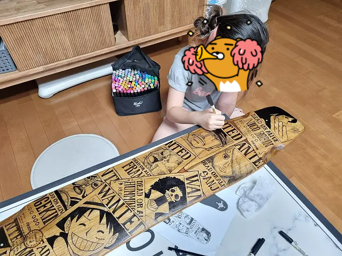 요즘 딸내미가 원피스에 흠뻑 빠져 있었기 때문에 여분의 롱보드를 커스터마이징해서 꾸며주기로 결정 했습니다.