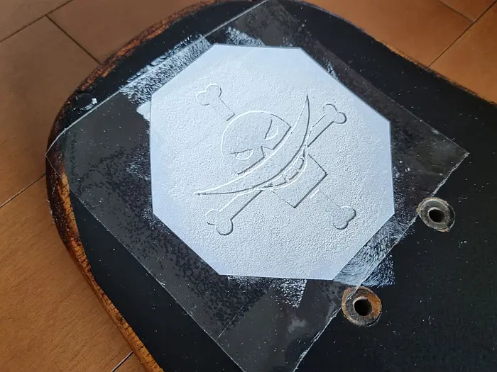 윗판은 검정색을 다 칠해준뒤 젯소를 이용해서 해적깃발을 그려줄겁니다.