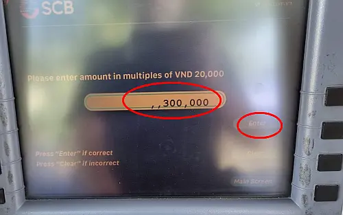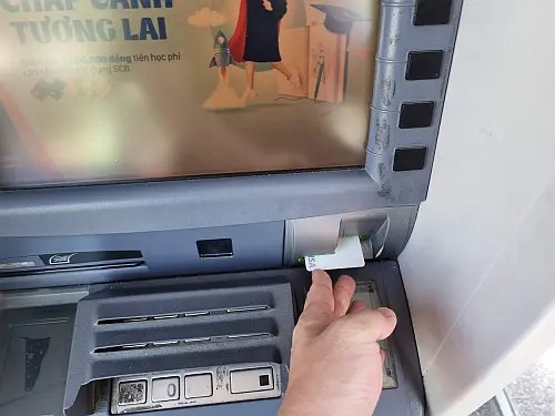 또한 인출 수수료는 은행 ATM 기계마다 차이가 있는 것 같습니다. 평일 낮에 SCB 은행에서는 30만동, 5만동 등 소액을 찾아 보았는데 둘다 수수료가 없었으나 다른 지역의 은행 (CN QUANG NAM) ATM 기계에서는 200만동을 찾을 때 49,500 동이 수수료로 나왔습니다. 아마 은행 업무 날짜나 시간 등에 영향을 받는 것일 수도 있습니다. 권종에 따른 수수료가 있는지도 모르겠습니다.