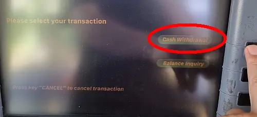 - Cash Withdrawal 선택