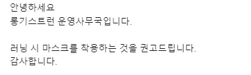 마스크를 쓰면 땀이랑 습기 때문에 2km 만 뛰어도 마스크가 입에 달라붙여 도처히 숨을 쉴 수 없었기에 달릴때 마스크 착용을 권고한다는 주최측의 답변은 나에겐 절망적인 소식이었다.