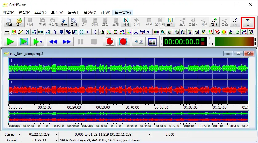 그리고 다시 goldwave 를 열어서 이런 저런 기능들을 살펴 보던중