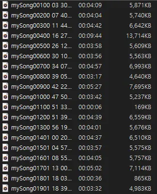 네 중간에 6초짜리 잘못 저장된 음원도 있네요. 9분짜리 음원도 있는데 아마 중간에 큐 삽입이 안된것 같습니다.