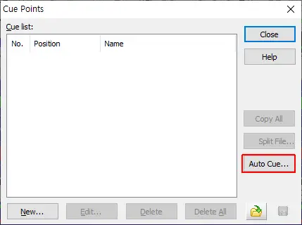 우리는 자동으로 음악을 자르는게 목적이므로 Auto Cue 버튼을 누릅니다.