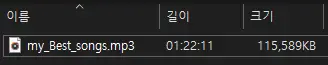 제가 다운로드 받은 곡은 OOO 의 베스트 곡 모음입니다. 무려 한시간 반 정도의 긴 음원이고 여러 곡이 포함되어 있습니다.