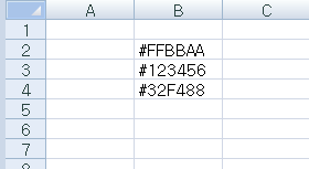 엑셀의 특정 영역에 16진수 색상 값을 적어 보겠습니다.