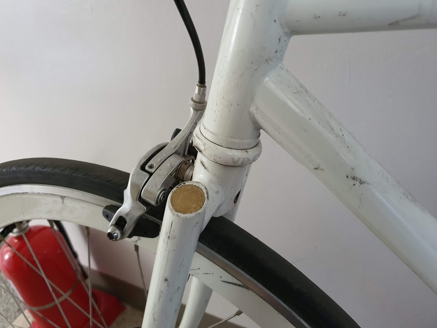 자전거 앞브레이크가 연결되어있는 부분의 나사를 풀어준뒤 그 사이에 장착을 해주기로 하였습니다.