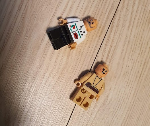 아이방에 레고 장난감 통에서 적당한 피규어 두마리를 골라봅니다.