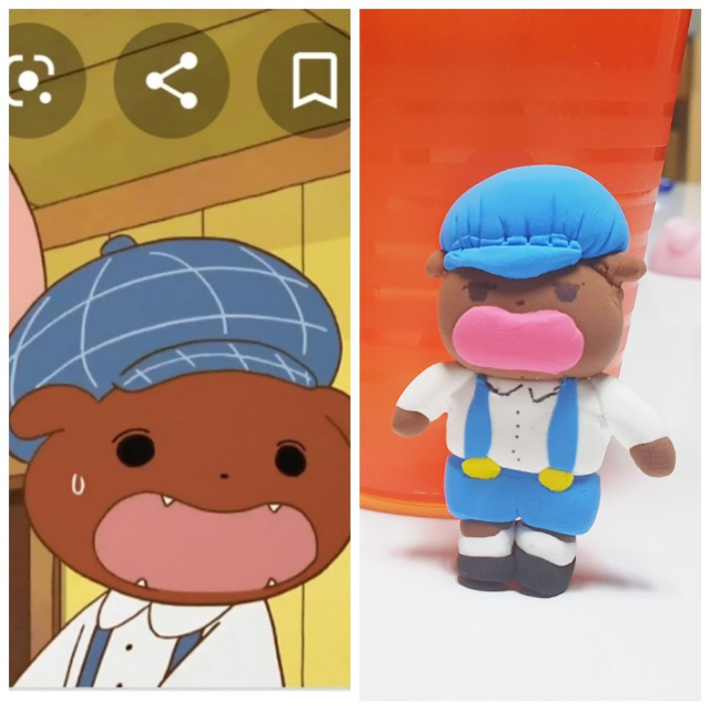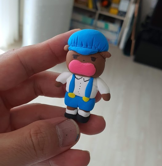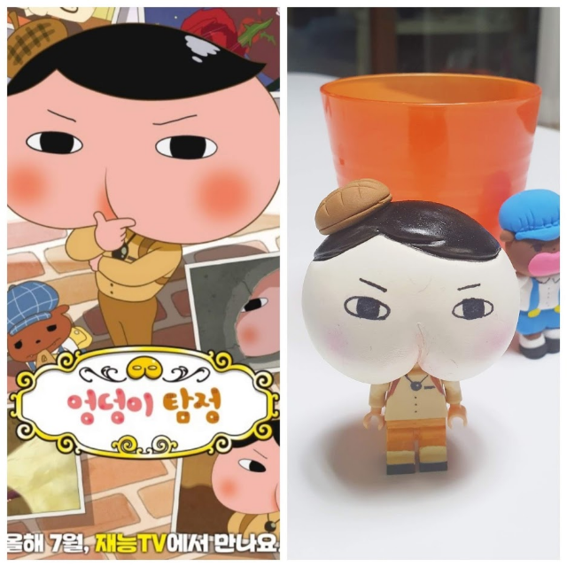어쨌든 아이들이 너무 좋아하는 캐릭터, 바로 엉덩이 탐정 인형을 만들어 주어야겠다고 생각하고 클래이를 집어 들었습니다.
