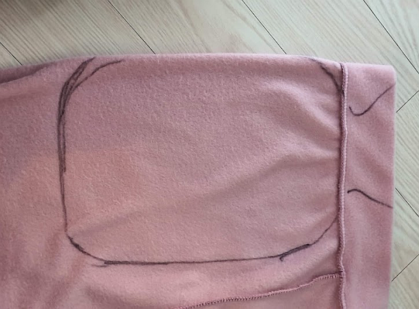가위로 대충 잘라준 후 아래와 같이 테두리를 따라 미싱으로 박아 줍니다.