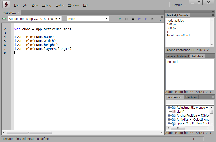 먼저 포토샵에서 스크립팅을 하기위하여 기본적인 환경을 살펴 보겠습니다.
