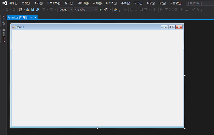 이렇게 빈 화면의 윈도우 폼이 하나 만들어 집니다.