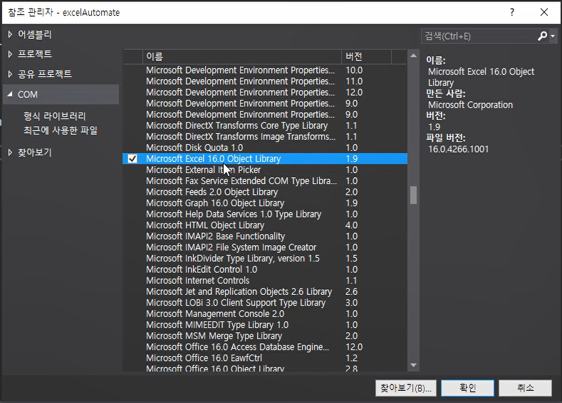 당연히 비주얼 스튜디오와 엑셀은 설치가 되어 있다고 보고 시작하겠습니다.