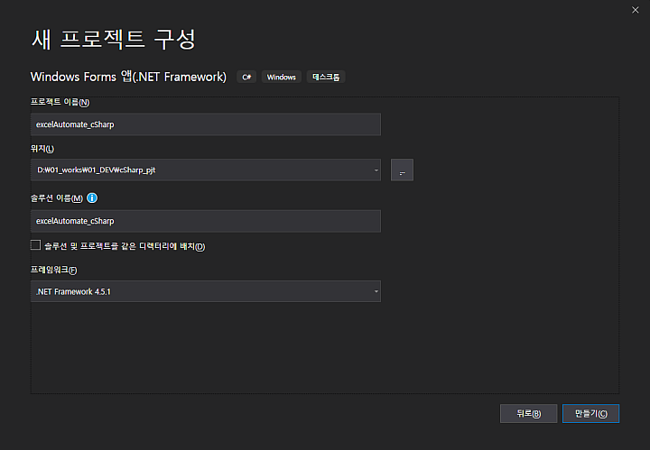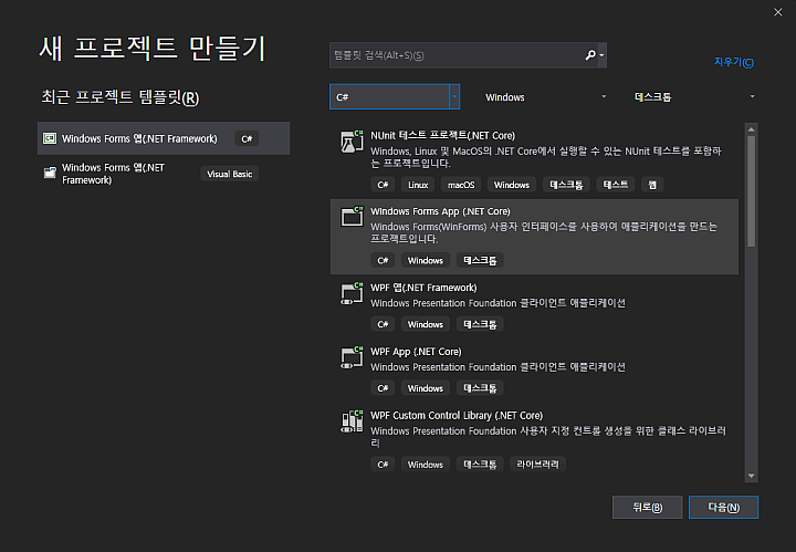 먼저 C# Window Forms App 프로젝트를 하나 생성합니다.
