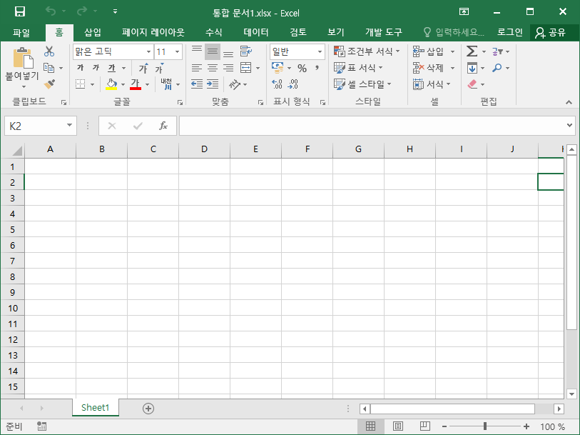 엑셀을 열고 창을 하나 만든 뒤 기본적으로 붙어 나오는 이름인 "통합 문서 1.xlsx" 로 저장을 해 놓겠습니다.