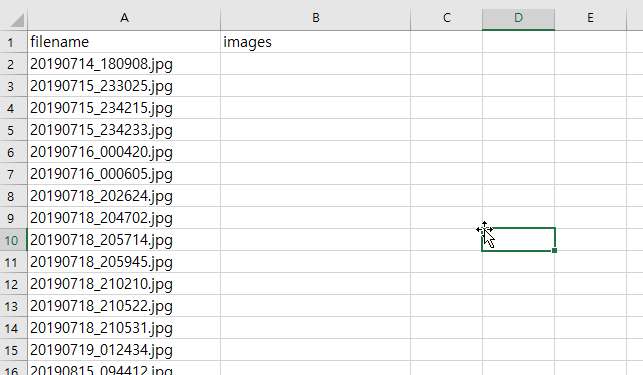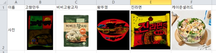 프로그램을 실항하기 전 엑셀 시트를 열어 놓고 이미지 이름이 붙어있는 데이터를 준비합니다.