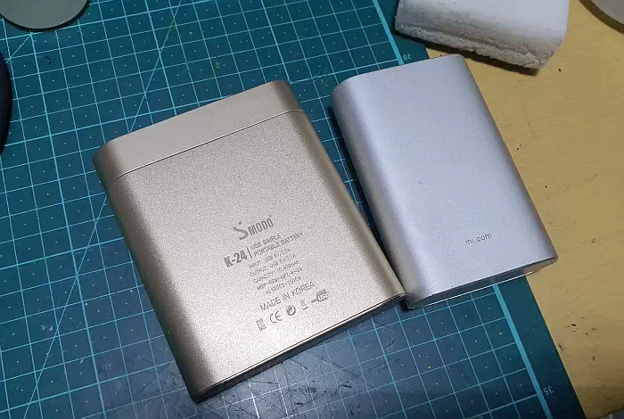 동작을 해보니 샤오미는 아주 상태가 괜찮은 상태입니다. 금색 제품(에스모도 외장배터리)은 고장난 상태였습니다.
