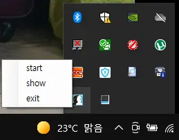 7. 윈도우 트래이 아이콘을 제공합니다. 닫기 버튼을 누르면 작업 표시줄에서 사라지고 트래이 아이콘만 표시됩니다.